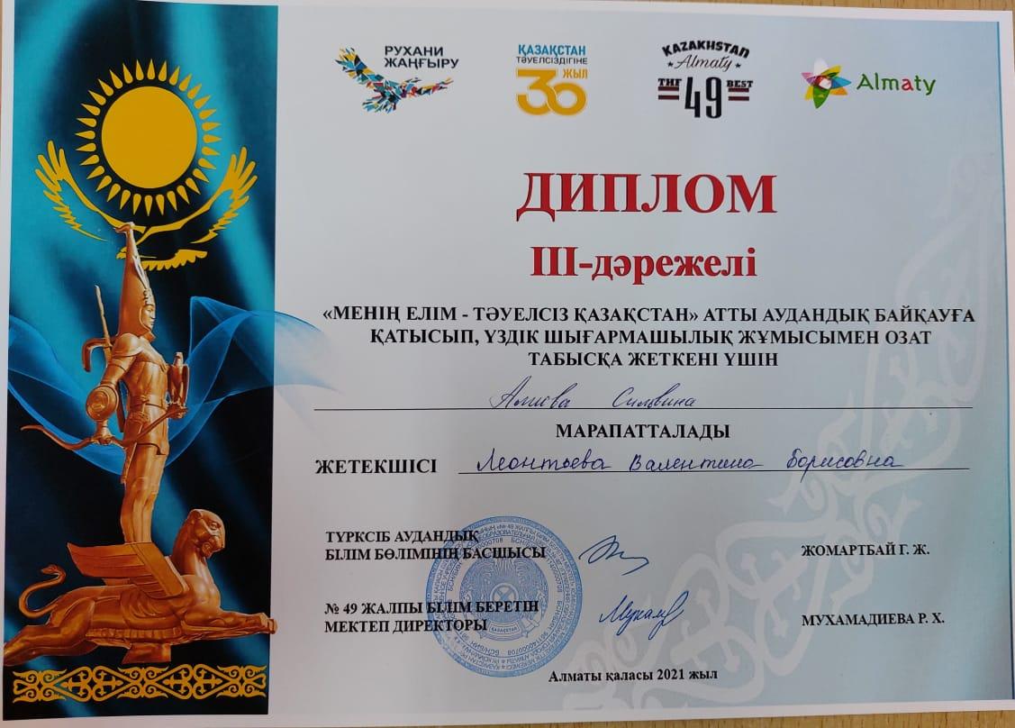 Диплом Биология пәнінен 2 орын/Диплом 2 место по биологии