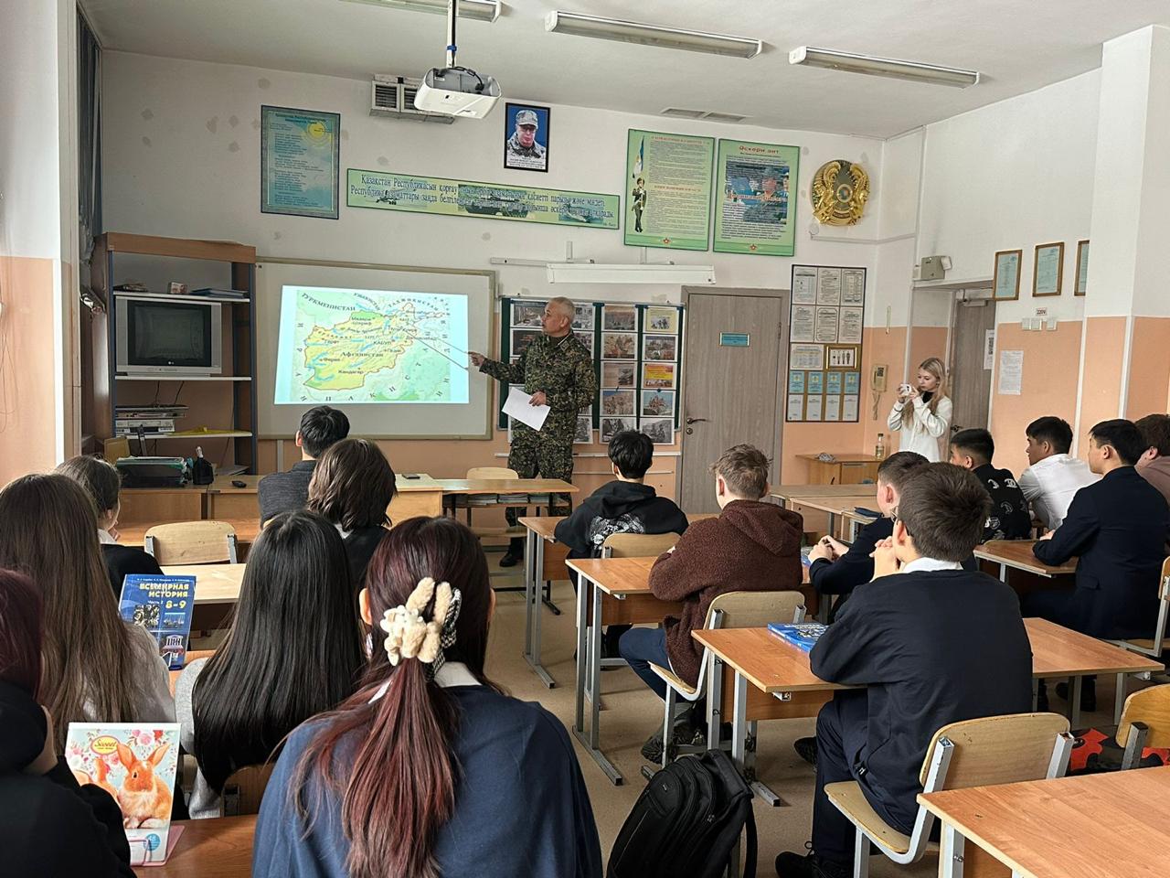 Дети ознакомились с географической и исторической справками об Исламской Республике Афганистан; ознакомились с этапами ведения боевых действий в Афганистане; с результатами боевых действий отряда СпН ГРУ ВС СССР, под командованием героя-казахстанца полковника Керимбаева Бориса Тукеновича и почтили память граждан Казахстана, погибших при выполнении интернационального долга в Афганистане «Минутой молчания».