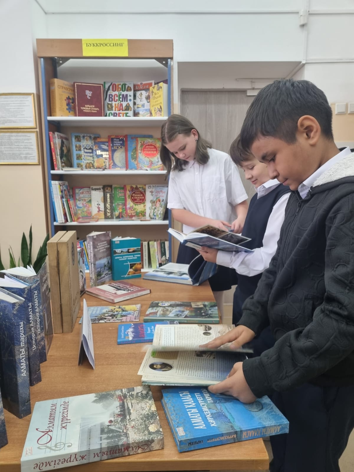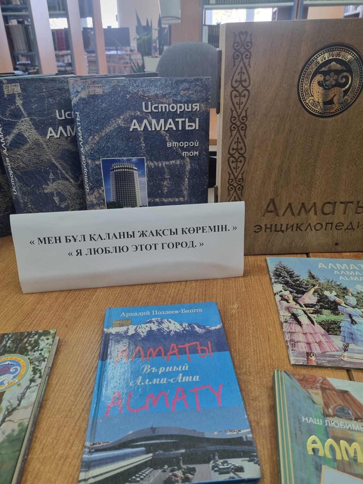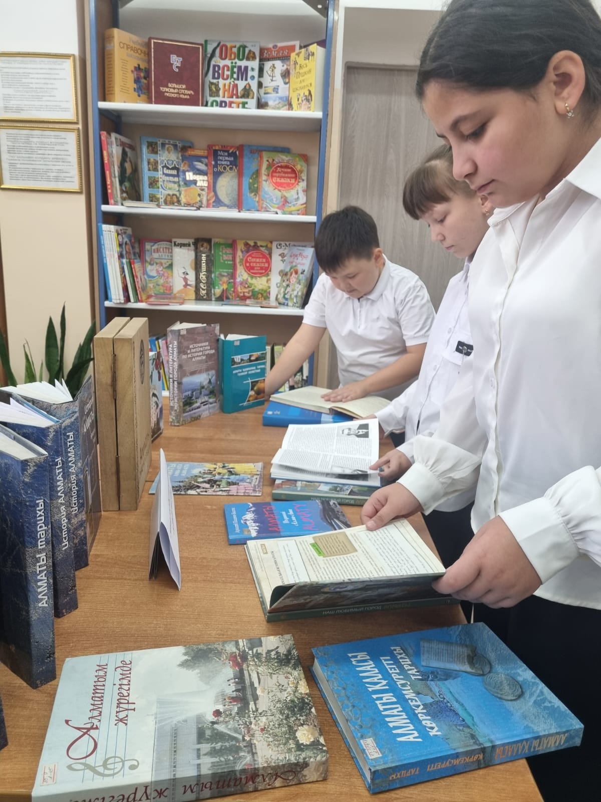 19 қыркүйек 2025 Адал азамат В рамках программы воспитания "Адал азамат"и проекта "Балалар китапханасы" в школьной библиотеке оформлена книжная выставка ко Дню города "Я люблю этот город"