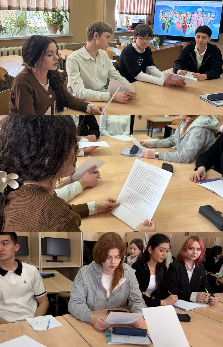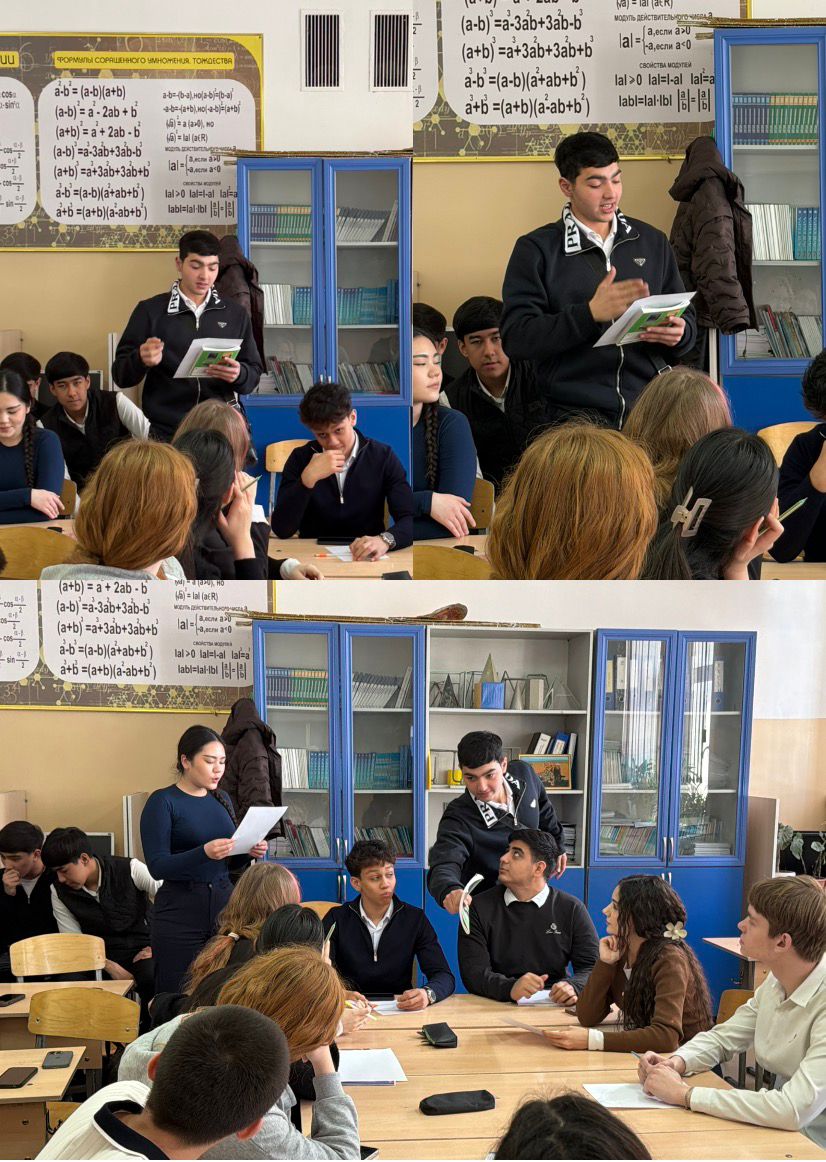 12 наурыз 2026 Дебаты Дебаты по теме : «Живет в мире согласия народ РК» в рамках меропритий направленных на укрепление дружбы им межнационального согласия.Принимали участие 10 В , с классным руководителем 10 А