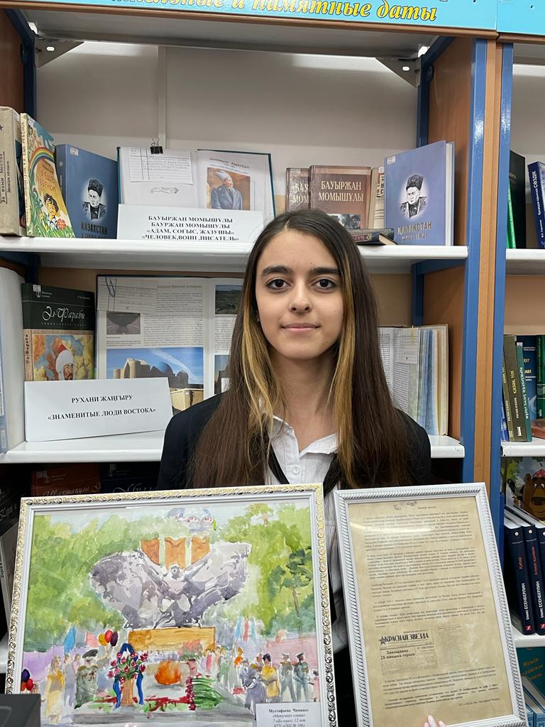 В городе Алматы прошёл городской конкурс "Боевой листок" посвящённый Дню Победы.Участие в конкурсе приняли Сивкова София ученица 10б класса,Мустафаева Чиминаз ученица 7б класса.Подготовка к конкурсу проходила в школьной библиотеке.Руководители учитель НВП Плешаков В.А.,учитель художественного труда Леонтьева В.Б.