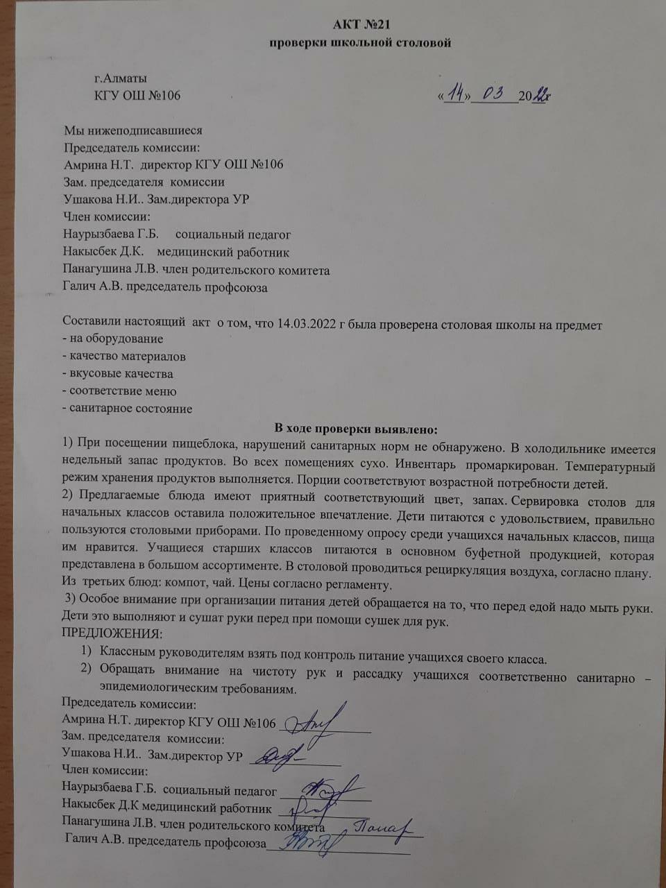 №35 акт мектеп асханасын тексеру. АКТ №35 проверки школьной столовой