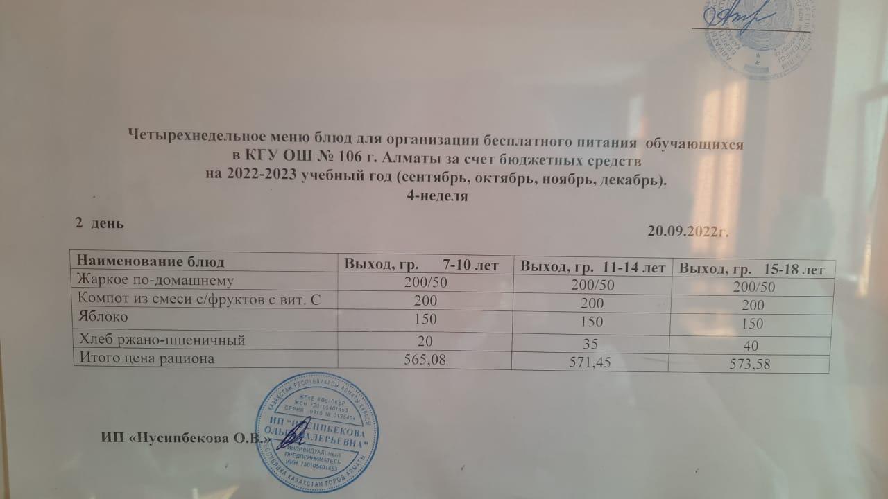 » Ас мәзір-20.09.2022. Меню-20.09.2022