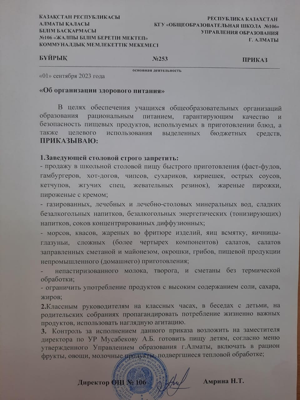 » "Салауатты тамақтануды ұйымдастыру туралы"/"Об организации здорового питания"
