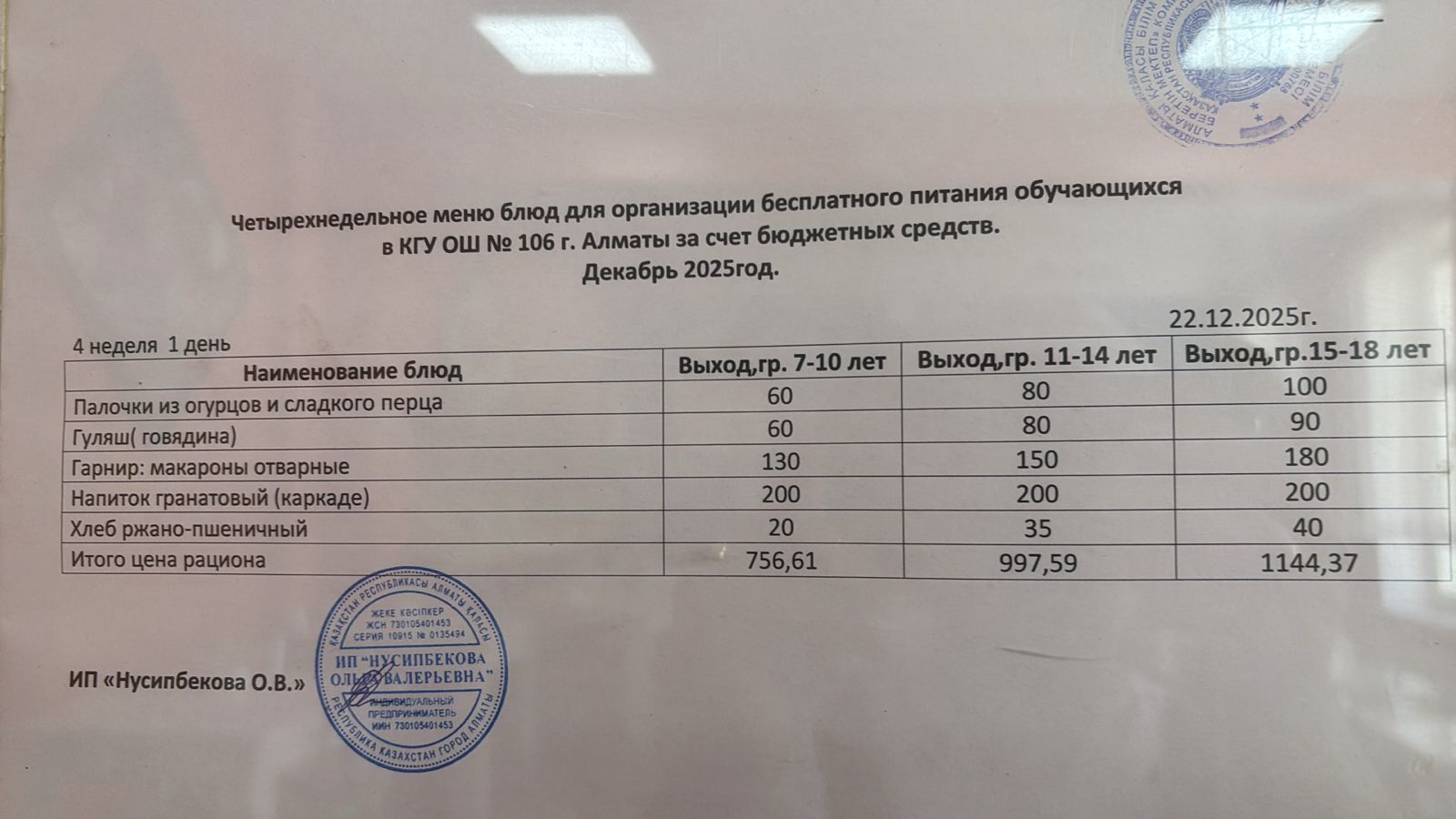 Ас мәзірі/Меню-22.12.25