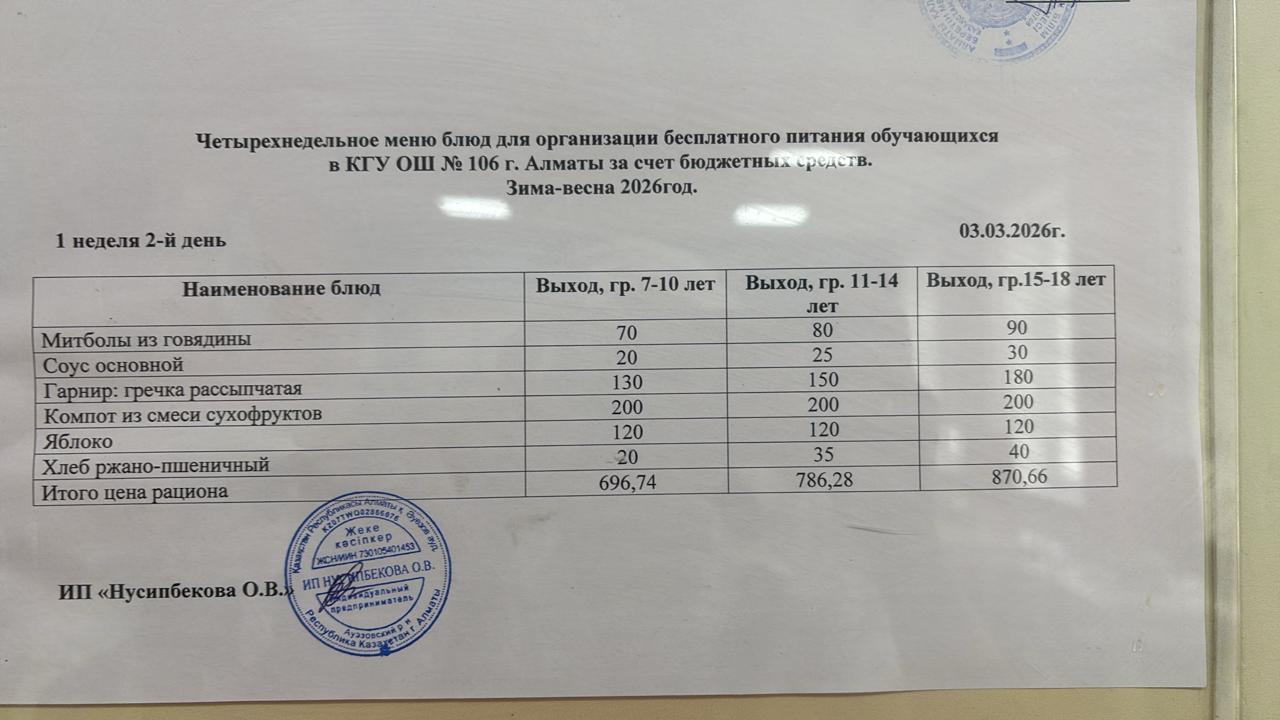 Бюджет қаражаты есебінен орта білім беру ұйымдарында білім алушылардың тегін тамақтануы/Четырехнедельное меню блюд для организации бесплатного питания обучающихся в организациях среднего образования за счет бюджетных средств зима 2025