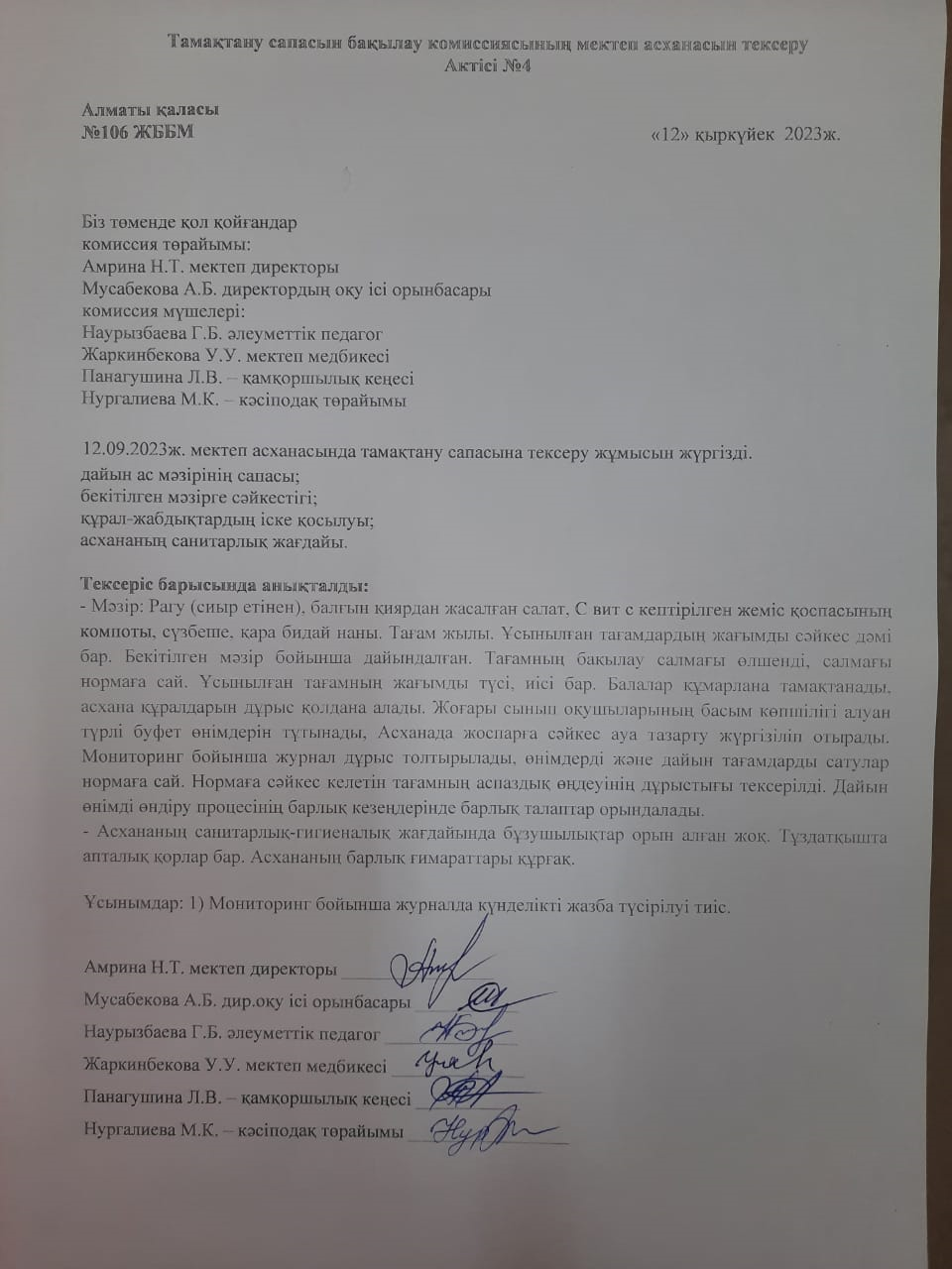 12 қыркүйек 2023 0 1 2 3 4 5 Бақылау комиссиясының мектеп асханасын тексеру туралы No4 АКТАКТ №4 проверки школьной столовой комиссии по мониторингу