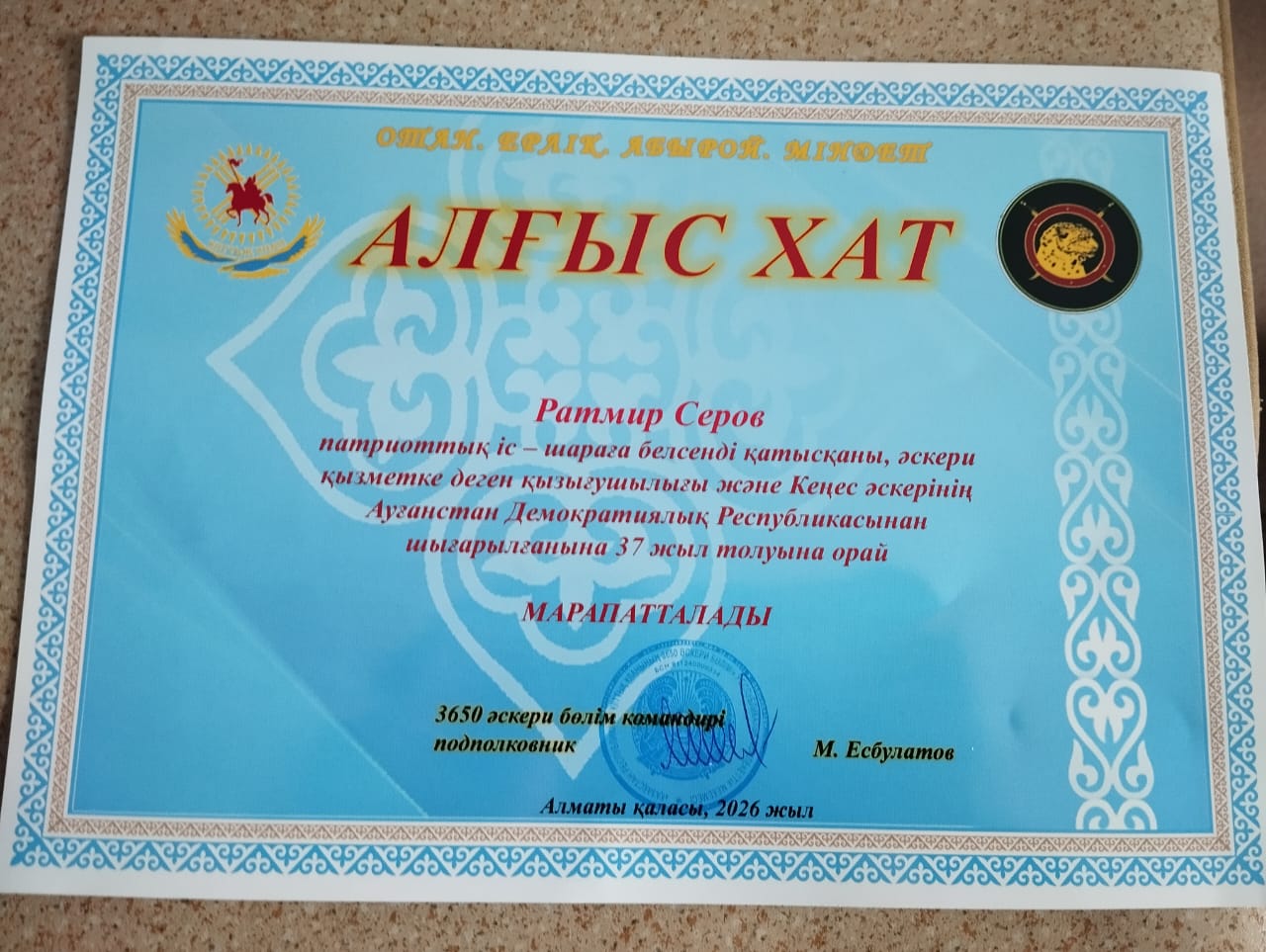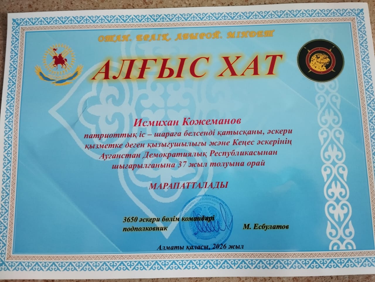 Республикалық үлгідегі қатысу сертификатымен педагогтар үшін олимпиадаға қатысқаны үшін С. А. Жиенқұлова марапатталды./ Сертификатом участия Республиканского образца награждена, за участие в олимпиаде для педагогов,Жиенкулова С.А.