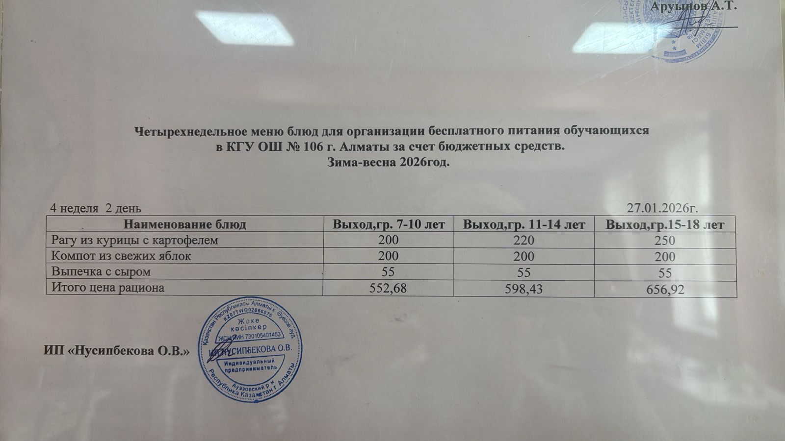 Меню по питанию/Меню 27.01.2026