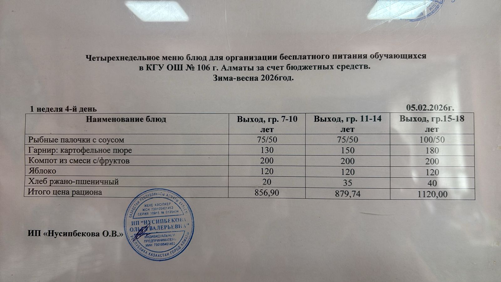 Бюджет қаражаты есебінен орта білім беру ұйымдарында білім алушылардың тегін тамақтануы/Четырехнедельное меню блюд для организации бесплатного питания обучающихся в организациях среднего образования за счет бюджетных средств зима 2025